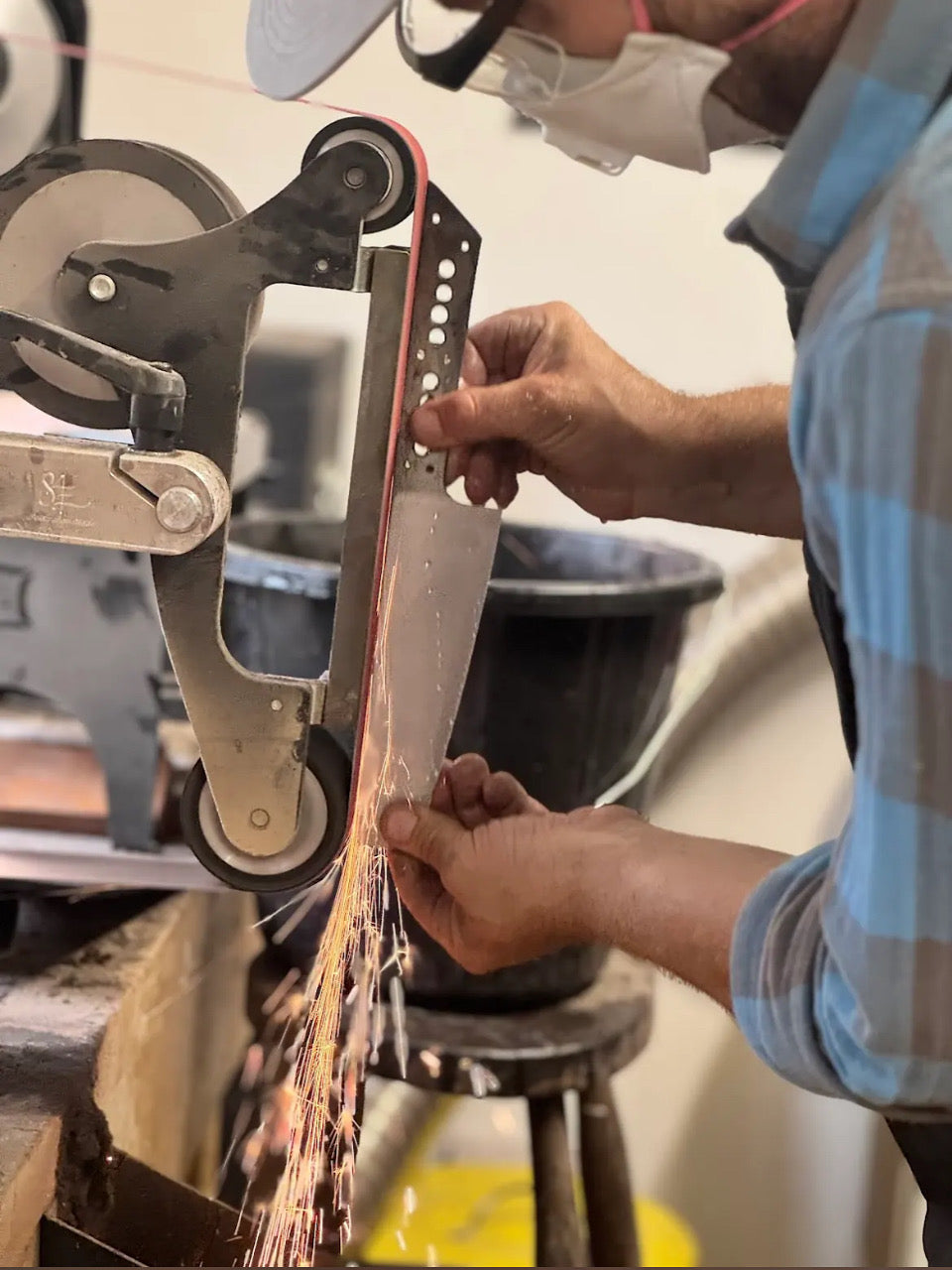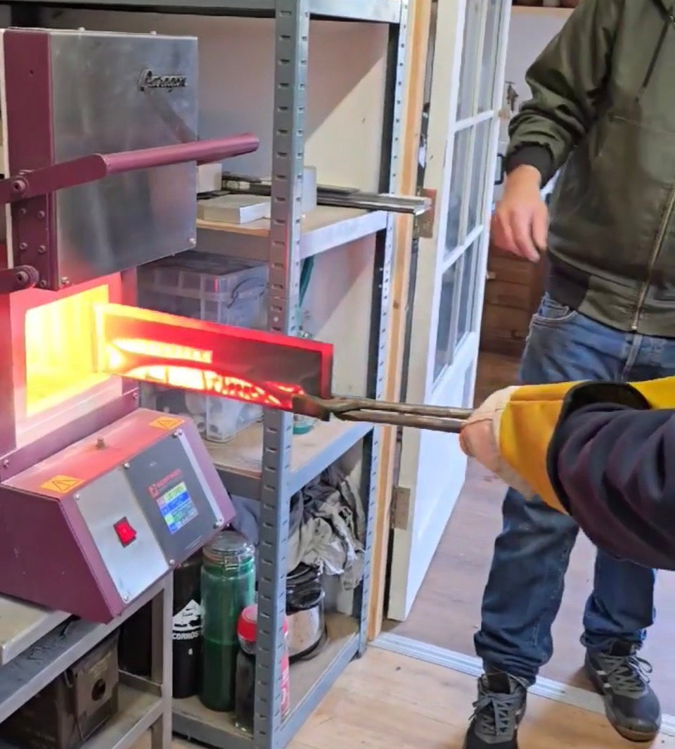 Knife making is a hands-on, start-to-finish process where you watch your blade take shape at every step. We begin with a flat bar of razor-blade stainless steel and your chosen handle material, then cut and shape the profile, drill pin holes, heat-treat the steel, add liners, grind the bevels, assemble the knife, shape the handle, and finish up by creating a sharp cutting edge.