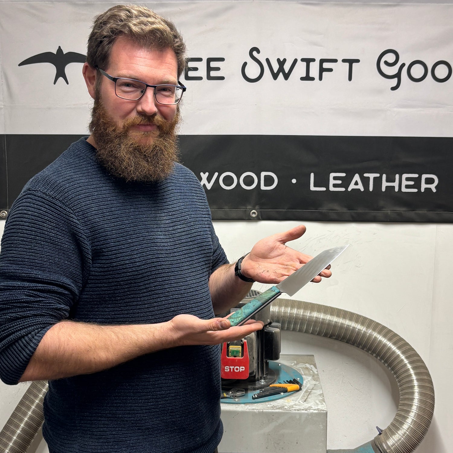 "I really enjoyed the knife making course. Luke was incredibly friendly, welcoming, and knowledgeable, which made the whole experience even better. I was surprised by how many stages there are in the process, and I learned so much along the way. The workshop itself is lovely, and I’m really happy with how my knife turned out – it looks and feels great! I’d definitely recommend this course to anyone interested and I can't stop telling everyone about my day at Tree swift goods!"