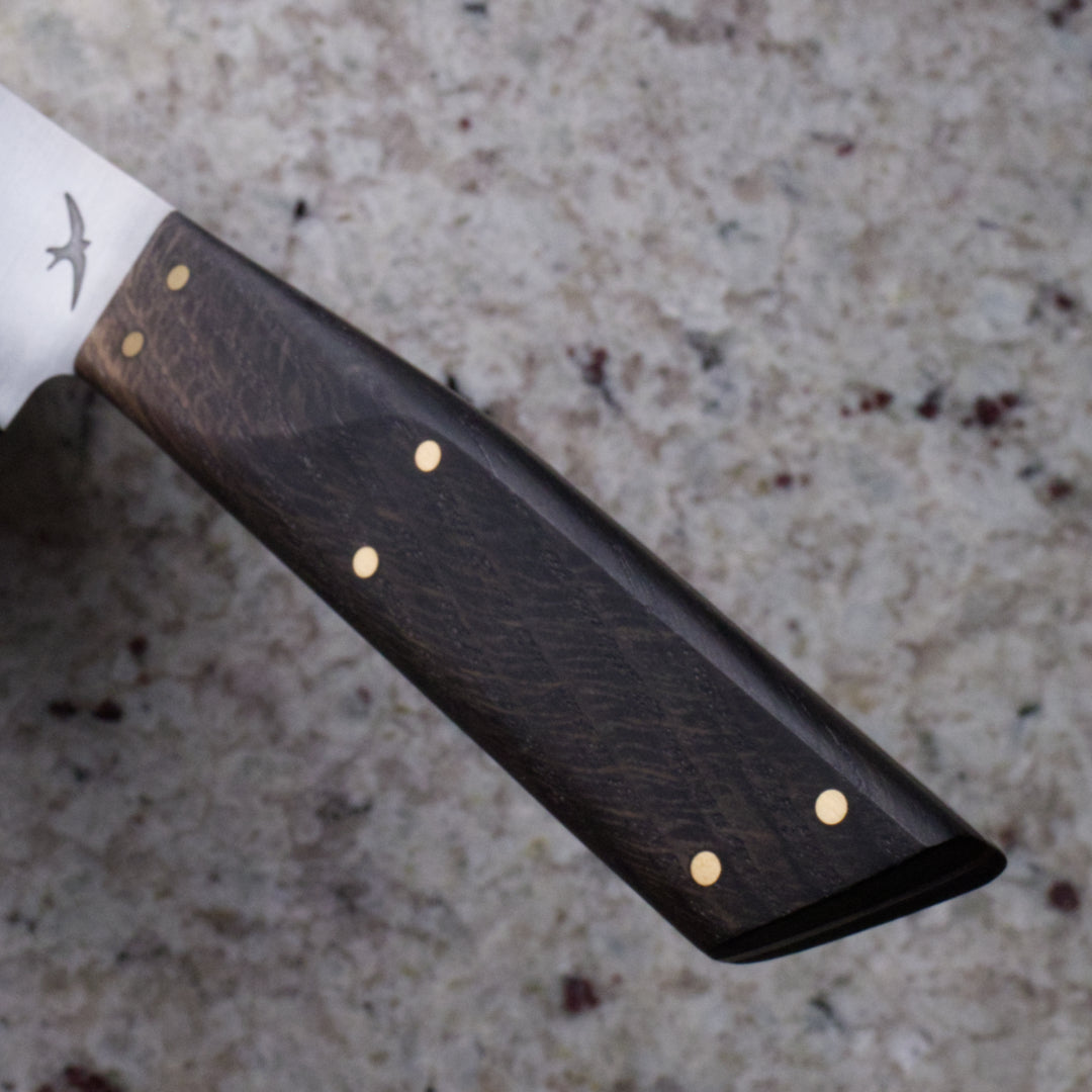 Hardwood is harvested from broadleaf trees. Its density varies depending on species, the denser of which e.g. desert ironwood, making for excellent handles due to their stability and resistance to moisture. The variety of hardwoods available make for an incredible selection of figure and colours. When using lighter hardwoods, I stabilise them in-house with heat curing epoxy to improve their density and stability, while maintaining their natural beauty.