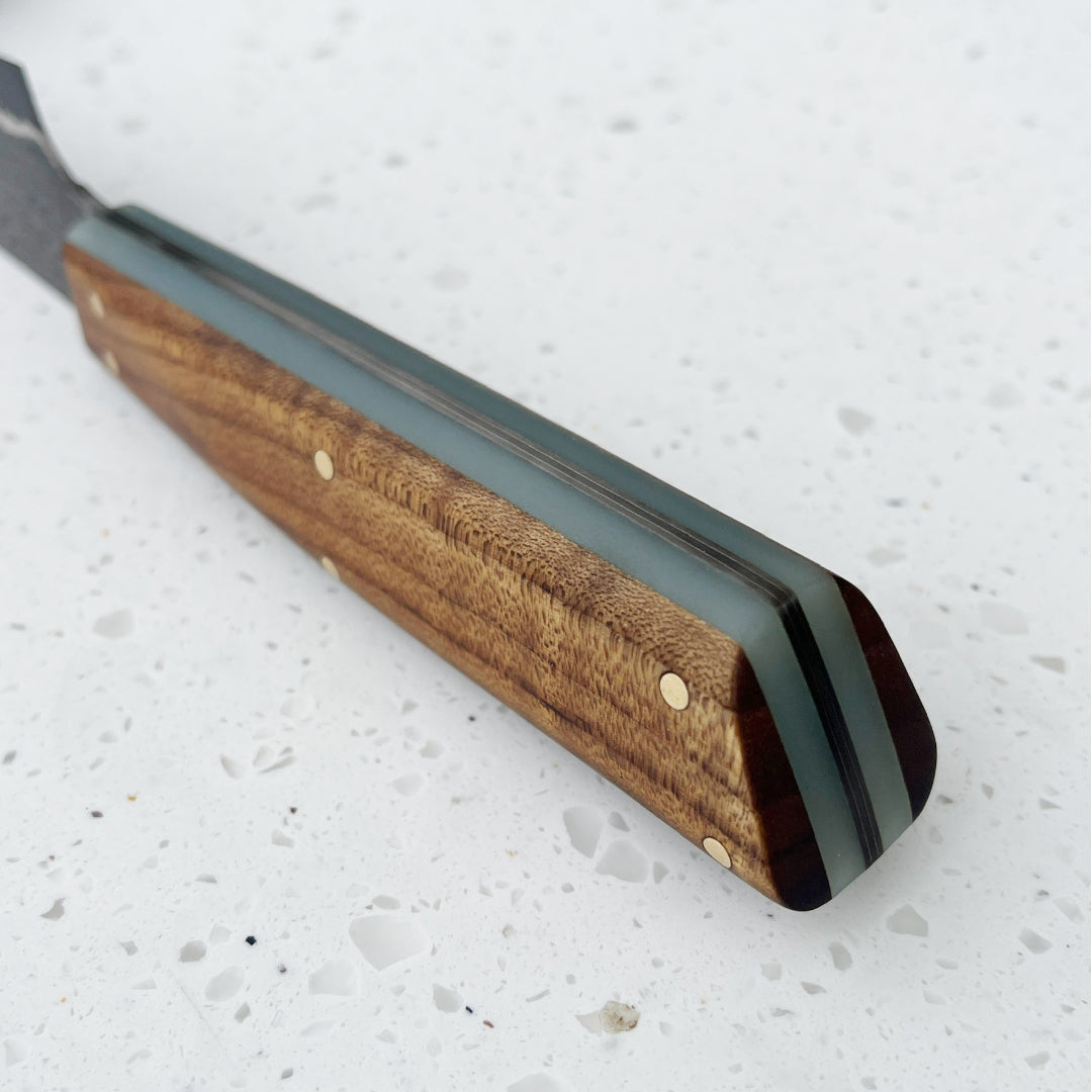 4.5" Petty Damascus San Mai 80CRV2 Jade G10 & Curly Maple